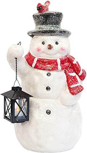 Mark Feldstein & Associates Snowman with Lantern LED Light Up 17 Inch Resin Stone Door Greeter Figurine (Sparkle)
